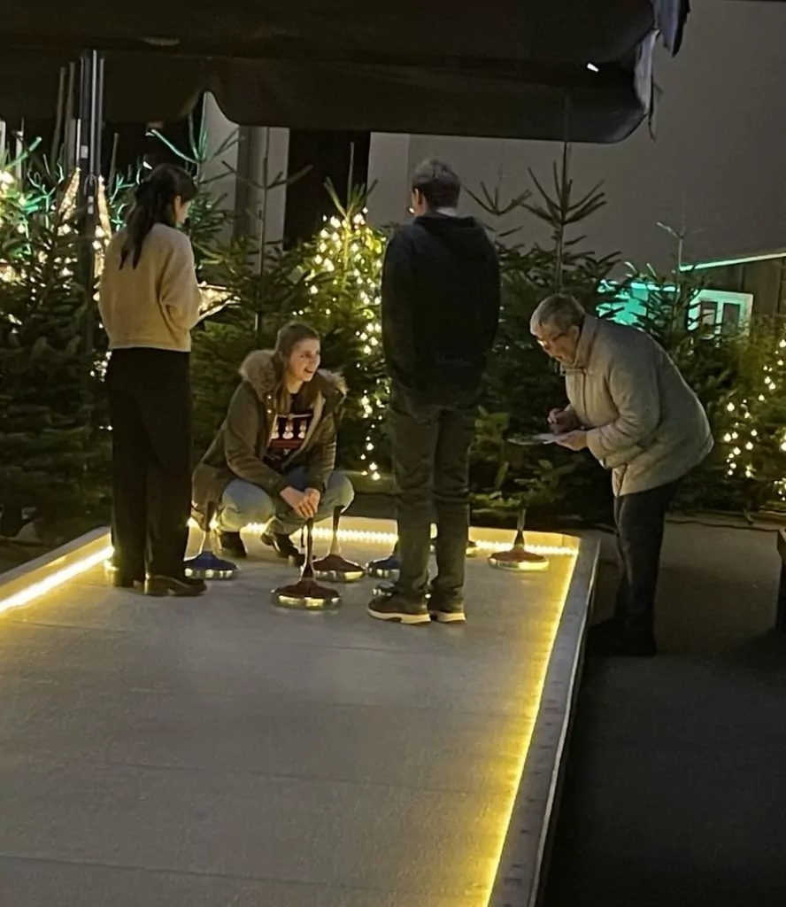 Das dachten wir uns auch bei unserer Weihnachtsfeier. Weitere Vorgaben: an der frischen Luft, zusammen im Team, mit sportlicher Bewegung und Spaß dabei. Mit anderen Worten: Eisstockschießen. Unsere Wahl fiel auf den Wintermarkt am Museum der Arbeit in Barmbek. In vier Teams ging es im Modus Jeder gegen Jeden zur Sache. Ein Siegerteam gab es am Ende natürlich auch, aber viel mehr ging es um die gemeinsame Zeit.